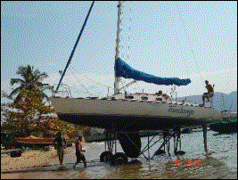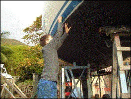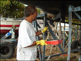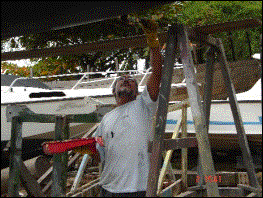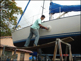Fora a pintura de fundo e as “perfumarias” (limpeza e polimento do costado), fizemos a troca de estaiamento e revisão do motor. |