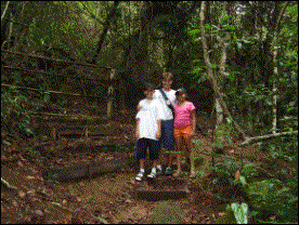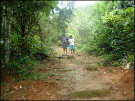 Trilha da represa com o nosso guia Elton. |