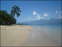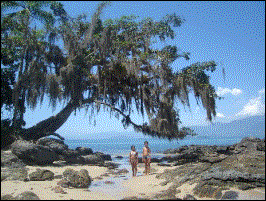 Após a “chuva” de excrementos, a linda praia da Ilha do Cedro. |