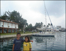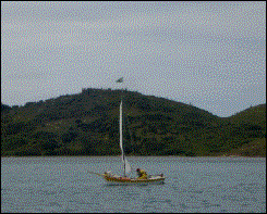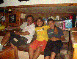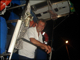 O amigo e professor de tecer redes, Edélcio, na popa do Tiki. |