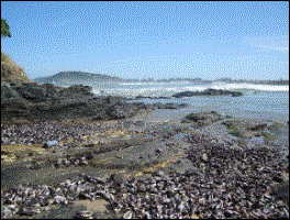 Praia da Tartaruga: nem sinal da ressaca que provocava confusões no ancoradouro. |