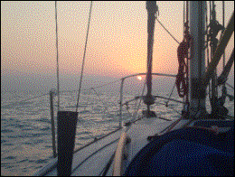 Ondas baixas e o sol nascendo, quando saíamos para Guarapari. |