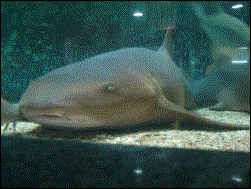 Tubarão-lixa no aquário de Guarapari. Cara de mau, mas não oferece perigo. |