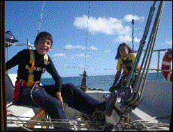 Abrolhos ao fundo. A Carol está apontando uma fragata que nos sobrevoava. |