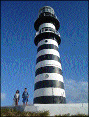 O muito bem conservado farol, que guia os navegantes na região. |