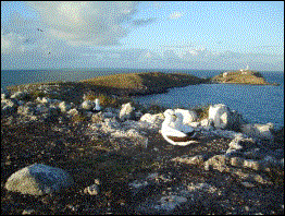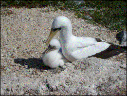... que estava lotada de atobás brancos com filhotes. |