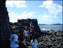 Paredões de pedra na Ilha Siriba. |
