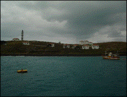 Sensacional vista do Farol de Abrolhos. O “Fandas” é um pequeno ponto no meio da foto. |