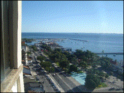 Subimos o Elevador Lacerda, de onde avistávamos toda a Cidade Baixa e a Baia de Todos os Santos. |