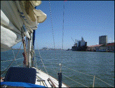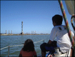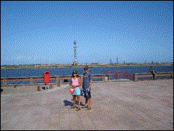 Entrando no porto de Recife, ao lado das esculturas de Brennand. |