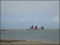 Marco Zero: no pequeno canal atrás das crianças se dá a largada da Refeno. |
