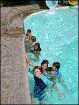 As crianças não saíam da piscina. Na foto estão as tripulações mirins do Fandango, Beduína, Cavalo Marinho e Tess. |