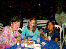 Gi, Talita e Carol, no jantar de comemoração antes da largada. |