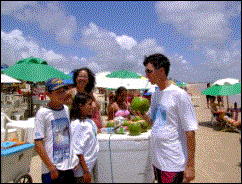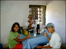 Rogério e seus filhos nos visitando no Fandango. |