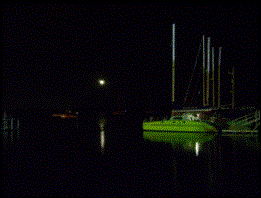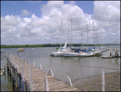 Fandango ao lado dos outros barcos no píer do Iate Clube. |