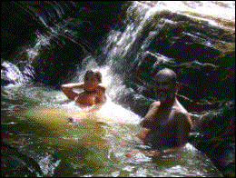 ... onde não resistimos a um banho de cachoeira (com água quente!). |