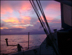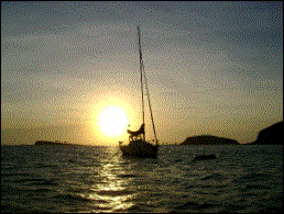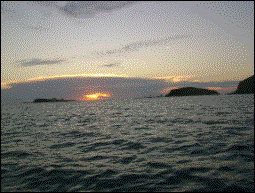 O entardecer do primeiro dia, cujo mar parecia o “canal de Ilhabela”. |