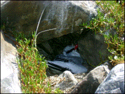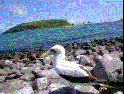 ... e alguns atobás jovens, trocando as penas. |