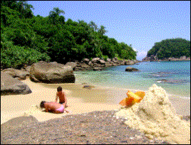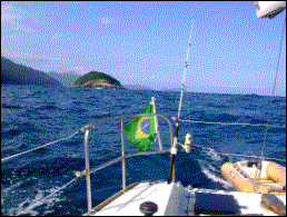 Chegando no Flamengo, com a ilha Anchieta ao fundo. |